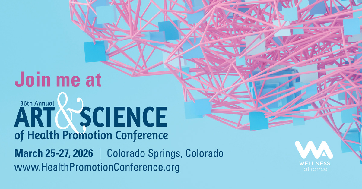 Will you be at the 36th Annual Art and Science of Health Promotion Conference? Plan to attend my session on [date], discussing [title]. I hope to see you there! To learn more visit wellnessalliance.org/healthpromotion #ASHPC #WellnessAlliance